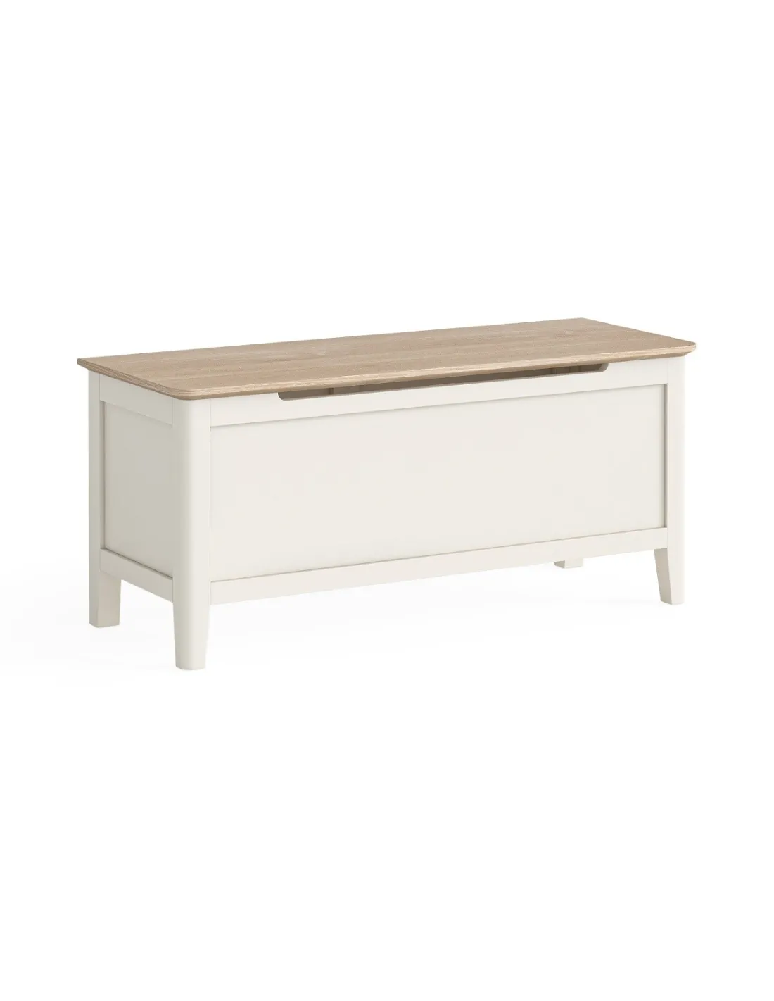 Reference: G8343The Marlow range features a beautifully painted finish paired with oak tops, available in two elegant colours – coconut white or navy. The oak tops are treated with a durable white wash oil, giving the collection a soft and refined aesthetic. Designed with gentle curves and tapered legs, this range brings both style and functionality to any space. With a variety of pieces available, Marlow offers versatile options to suit different rooms and needs.