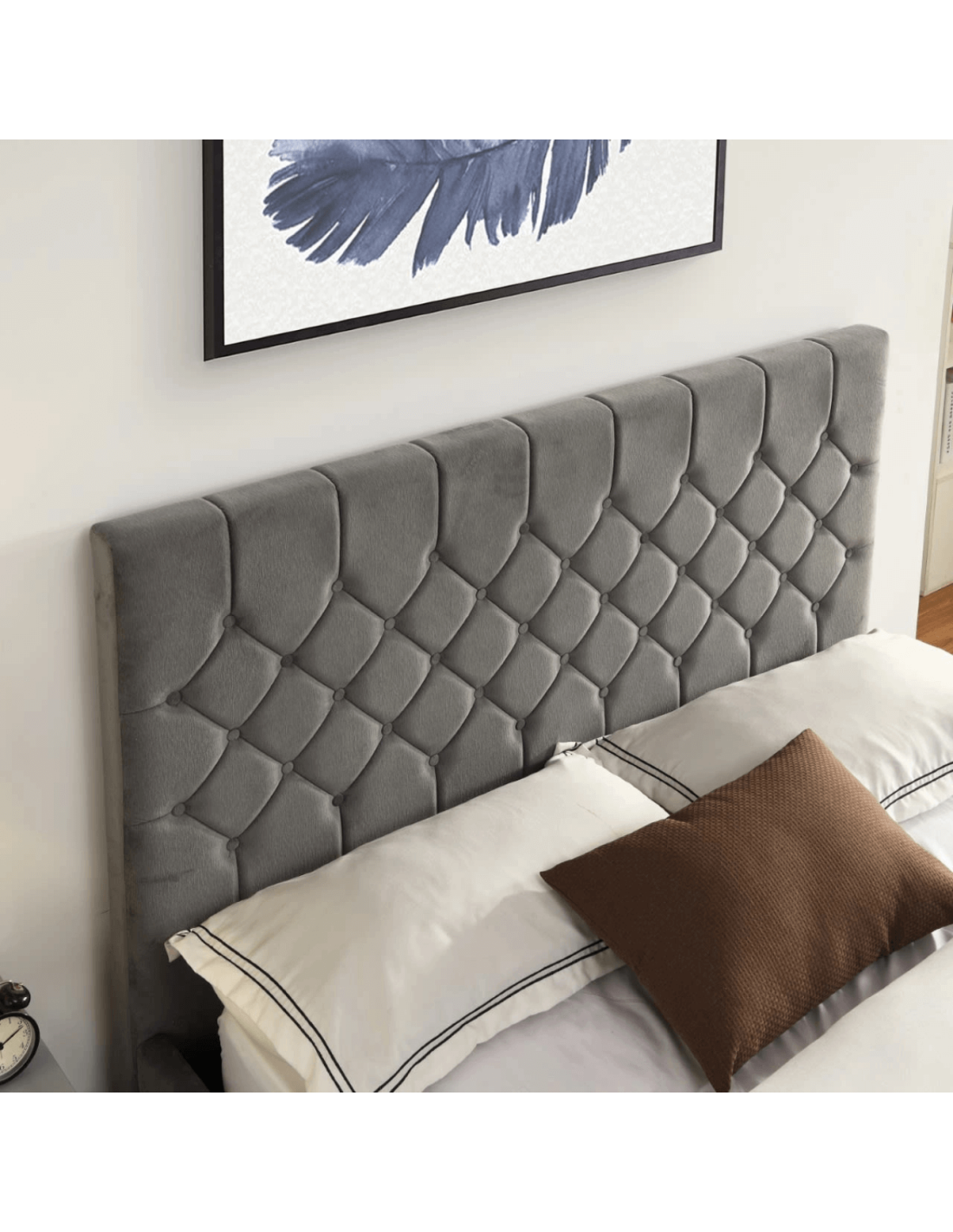 Reference: GALWAYGREYBED-4FTIntroducing the Galway grey bed—an epitome of modern luxury, designed to redefine your bedroom experience. It's a tactile paradise draped in inviting fabric. The unique diamond pattern on the headboard and footboard, along with the button-back detail, adds an extra layer of elegance and sophistication. Supported by four modern metallic feet, it's not just a bed; it's a haven of style and comfort.