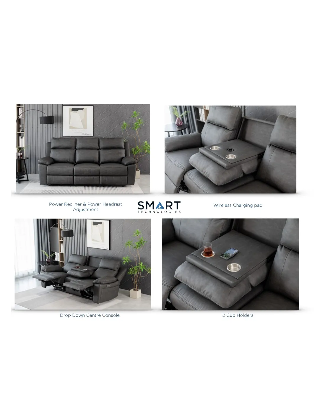 Huntington 3 Seater Electric Recliner Sofa - Dark Grey
