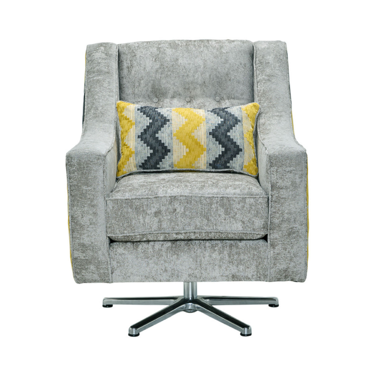 • Contemporary design with a sleek metal swivel base