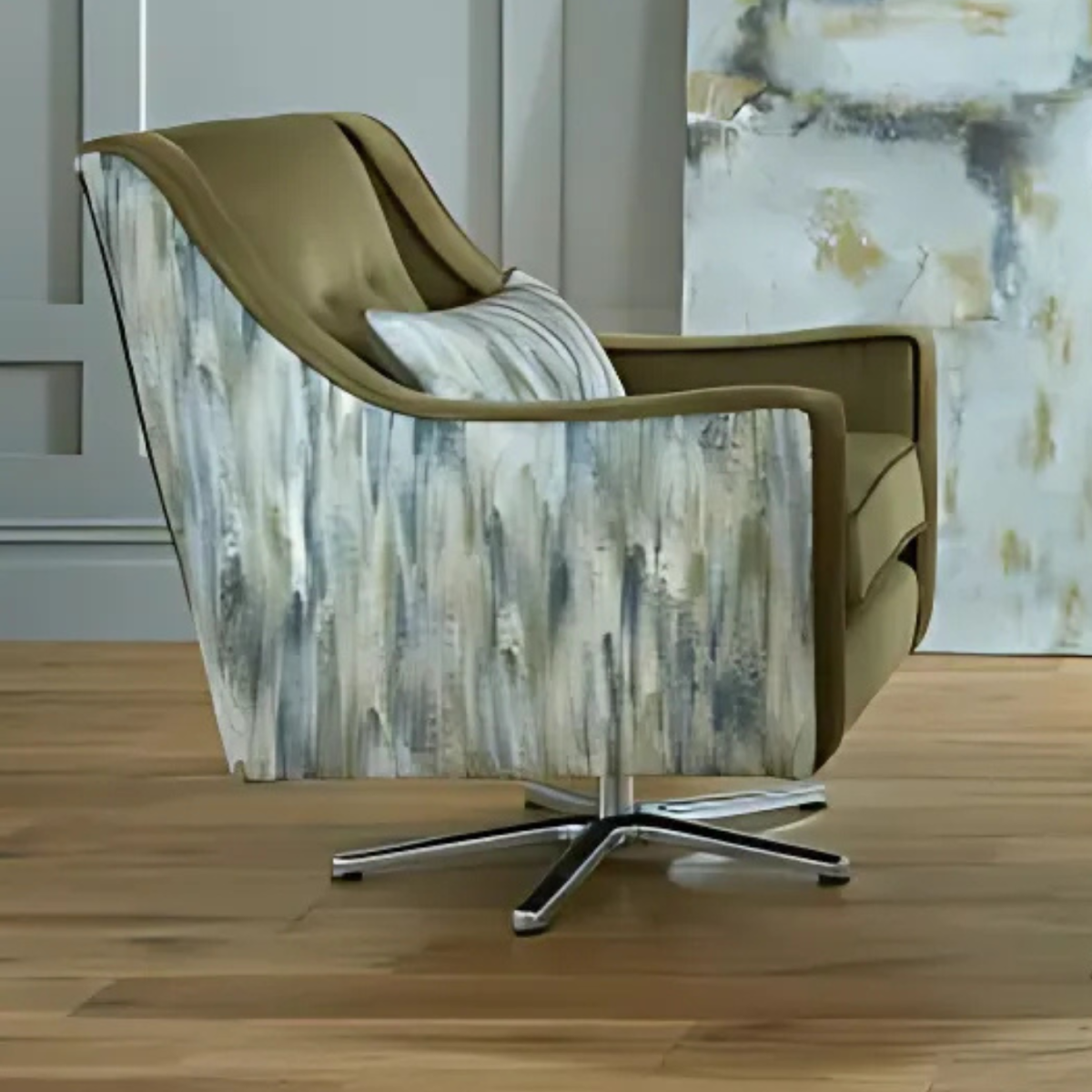 The Java swivel chair offers a blend of contemporary elegance and exceptional comfort, making it the ideal addition to any modern living space. Available in four sophisticated colors—Truffle, Navy Blue, Olive Green, and Emerald Green—each chair is designed to elevate your interior with its sleek metal swivel base and generously cushioned seating. The distinctive patterned fabric on the backrest adds a subtle artistic detail, making this chair a stylish focal point in any room.