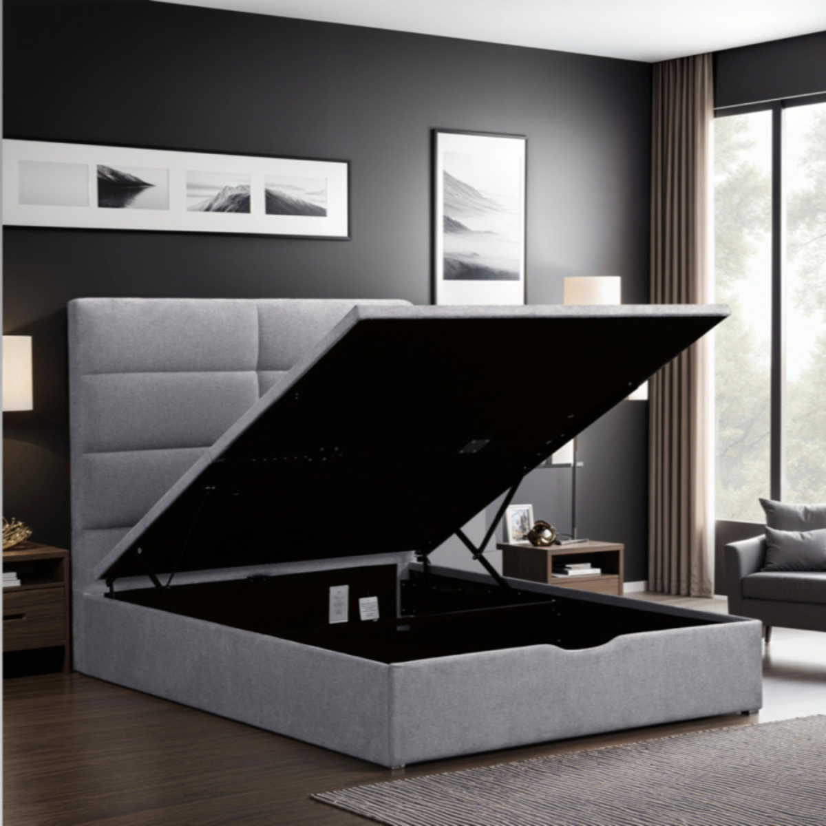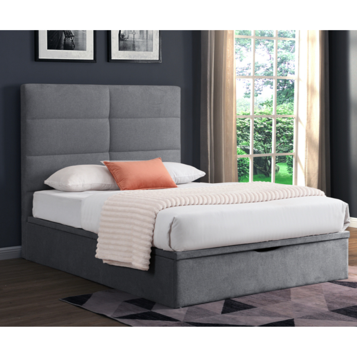 Reference: 15685The Jessica gas lift storage bed offers understated elegance with a sleek and versatile design. Upholstered in chic Grey, its plain back design provides a minimalist aesthetic that suits both modern and classic interiors. Designed for practicality, the gas lift mechanism allows smooth access to the spacious under-bed storage, while the full platform base delivers excellent mattress support and lasting strength. Available in 5ft or 4ft6 sizes, the Jessica bedframe is a smart choice for stylish comfort and functionality.