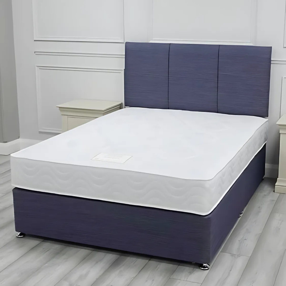 Reference: Romandivanblue46The Jupiter tweed divan in blue offers a perfect blend of style, durability and comfort. Upholstered in premium tweed fabric, it features a sturdy and supportive base, making it an ideal foundation for a great night's sleep. Its timeless design complements any bedroom décor while adding a touch of sophistication.