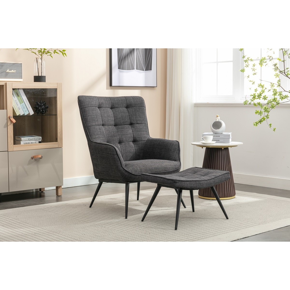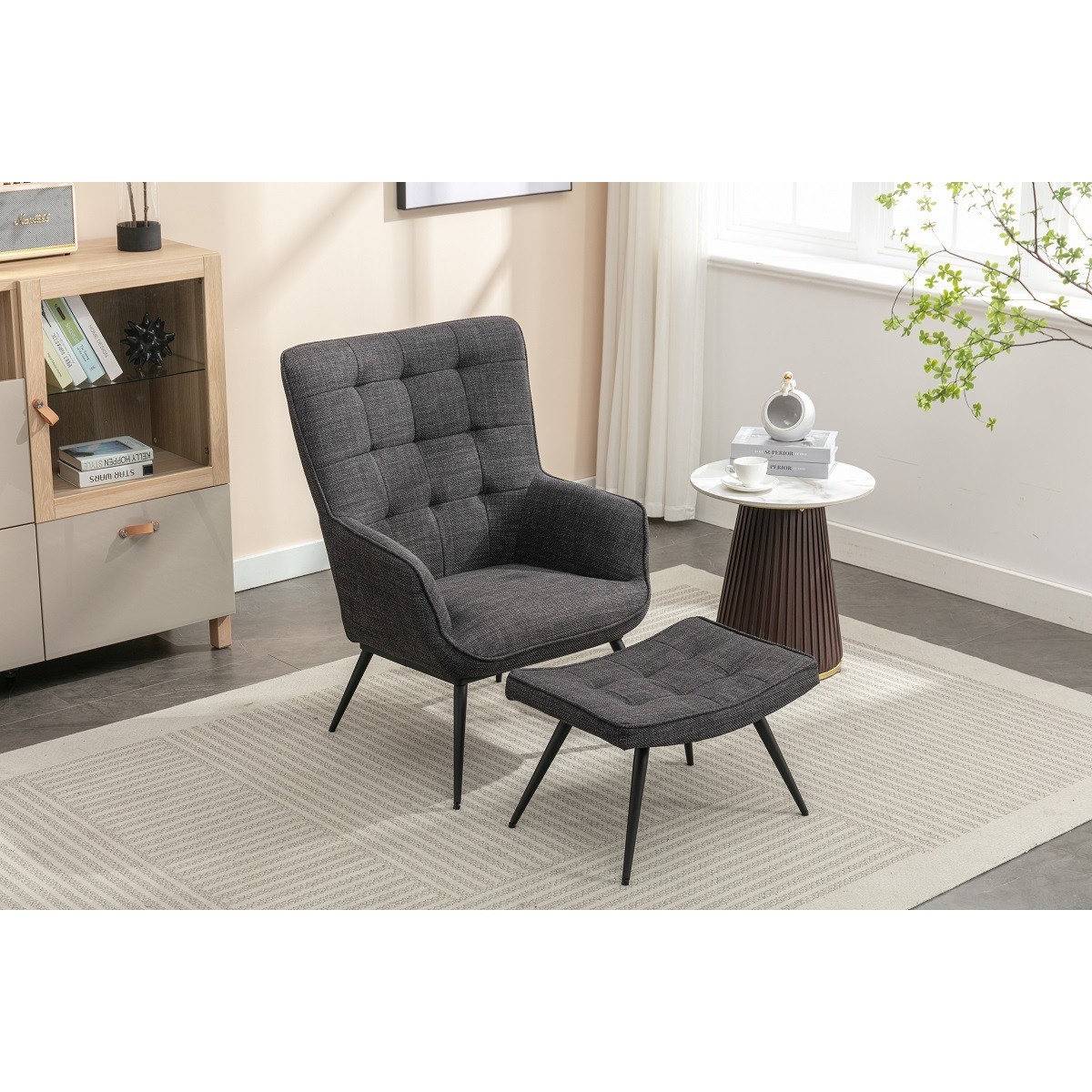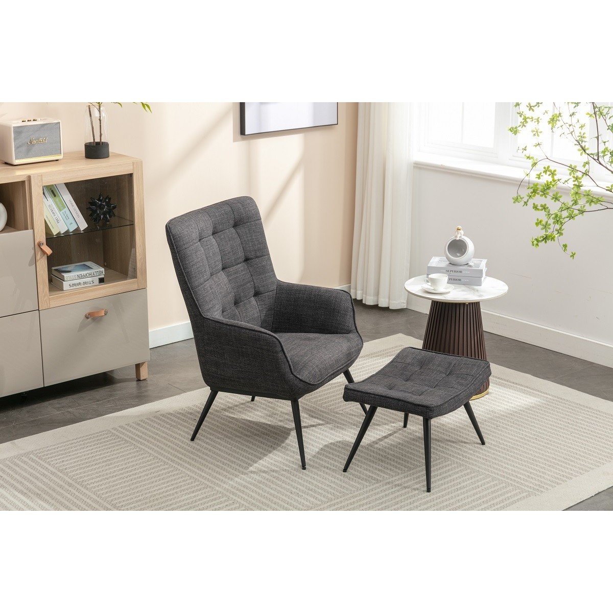 Katelyn Accent Chair with Stool - Charcoal Grey