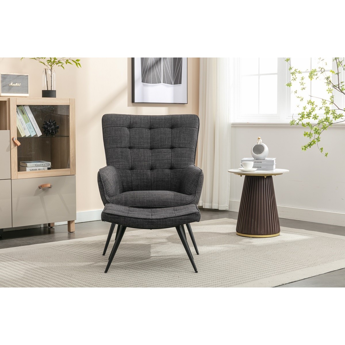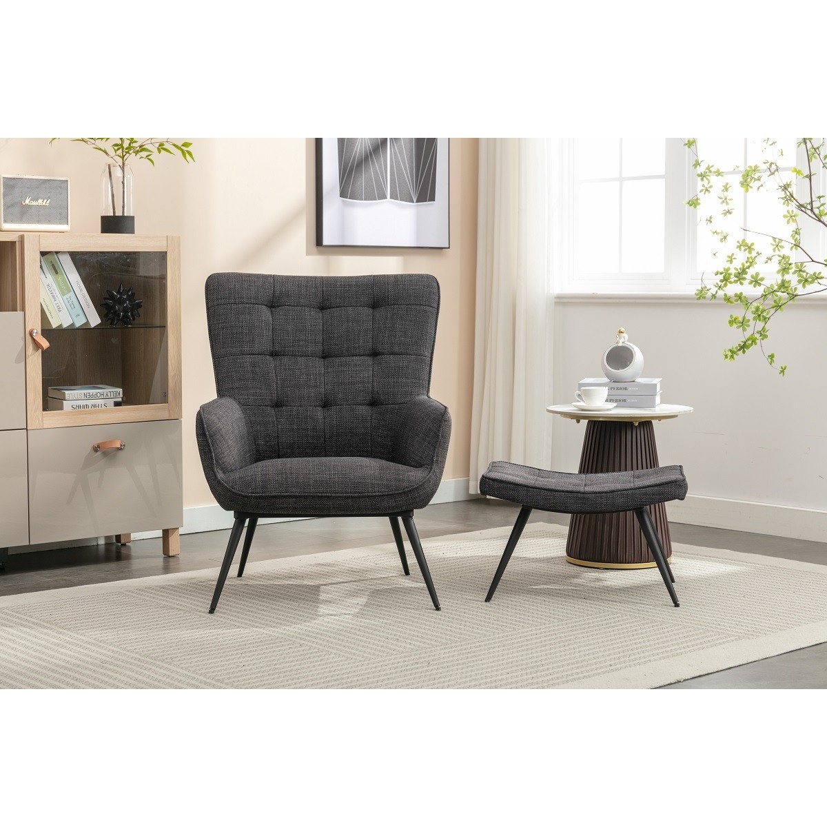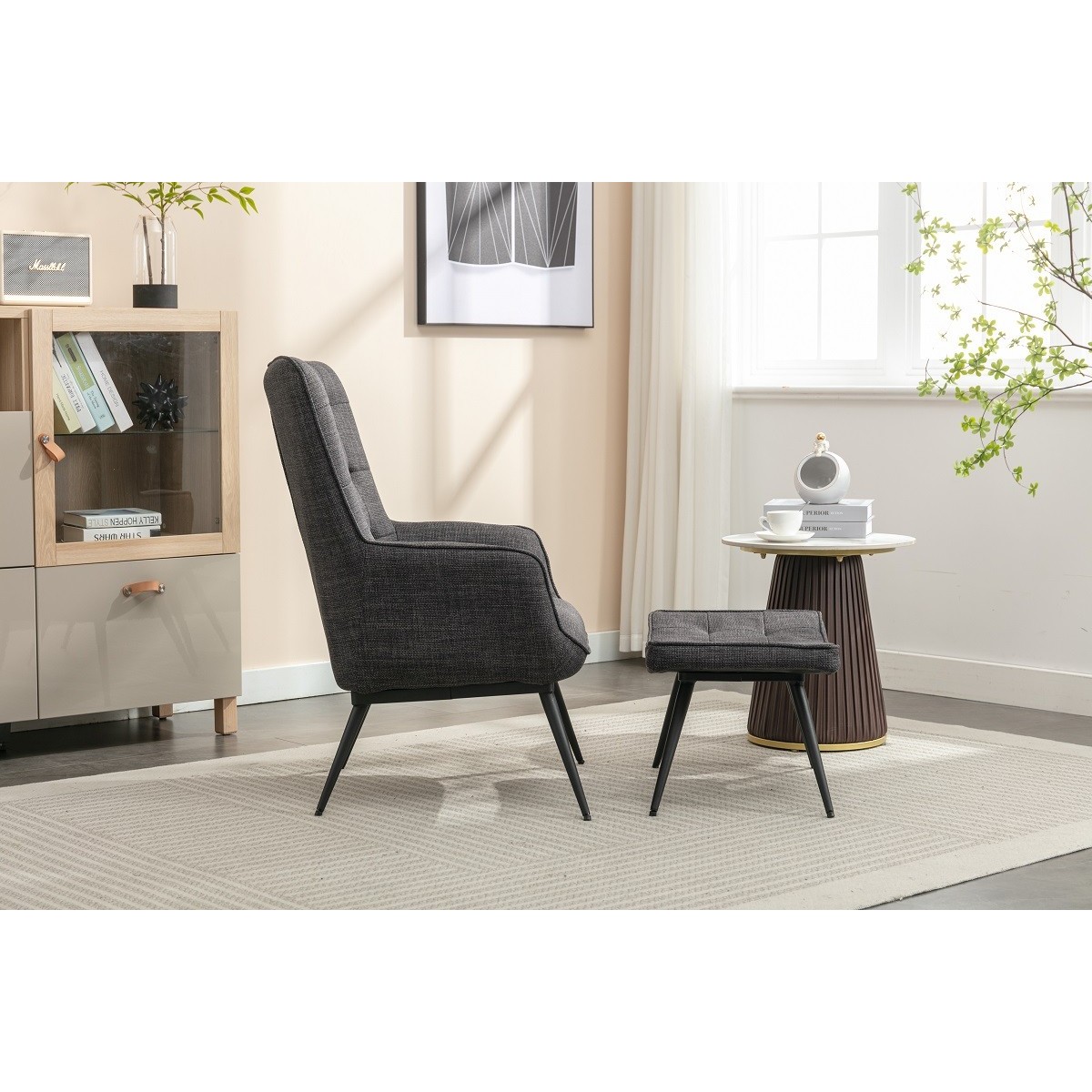Katelyn Accent Chair with Stool - Charcoal Grey
