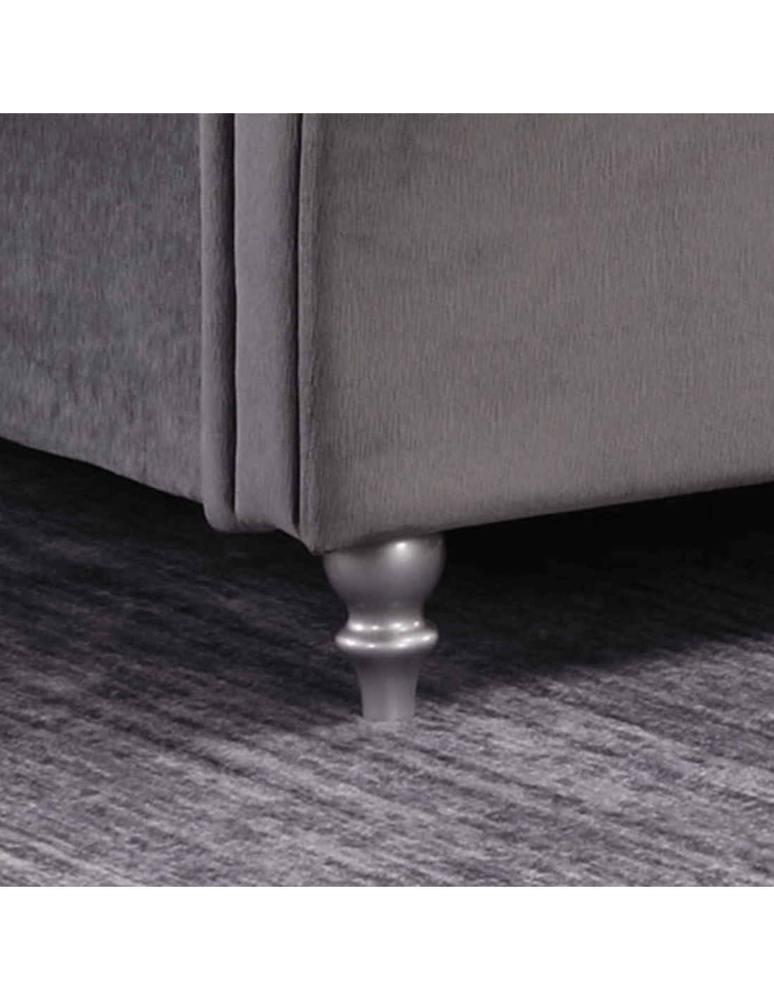 Reference: KILKENNYGREYBED-6FTAdd a touch of regal elegance to your bedroom with the Kilkenny traditional bedframe. Draped in luxurious velvet, this bed combines classic design with modern sophistication. The diamond-patterned headboard creates a striking focal point, while the button-back details on both the headboard and footboard add depth and texture. The sturdy silver-stained wooden feet offer strong support and complete the luxurious look, making this bed the perfect centerpiece for any bedroom.