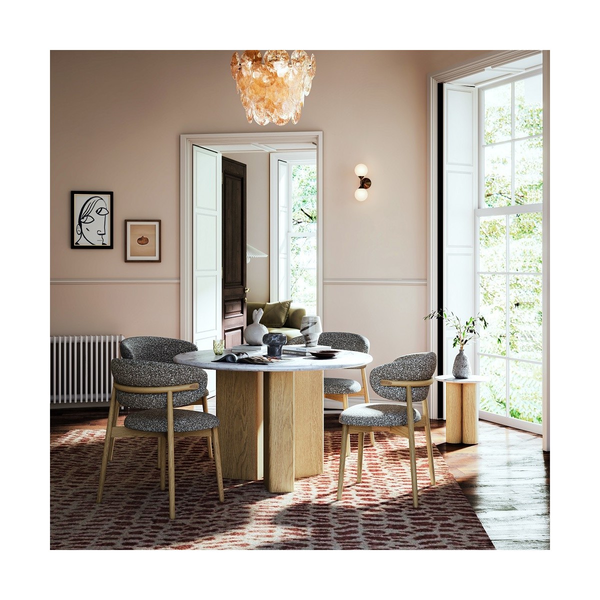 Reference: G9305The Lesing range is a state-of-the-art furniture line that seamlessly combines modern luxury with timeless craftsmanship. At its core are elegant design elements, such as bullnose edges on the real marble tops. These rounded contours soften the overall look, creating a refined finish while enhancing safety and usability by reducing sharp edges. This thoughtful detail elevates the countertop’s luxurious appeal. The light oak finish enhances the natural beauty of the wood grain, maintaining a fresh and versatile aesthetic that suits a wide range of interiors. This collection blends modern innovation with timeless beauty, making it an exquisite addition to any living space.