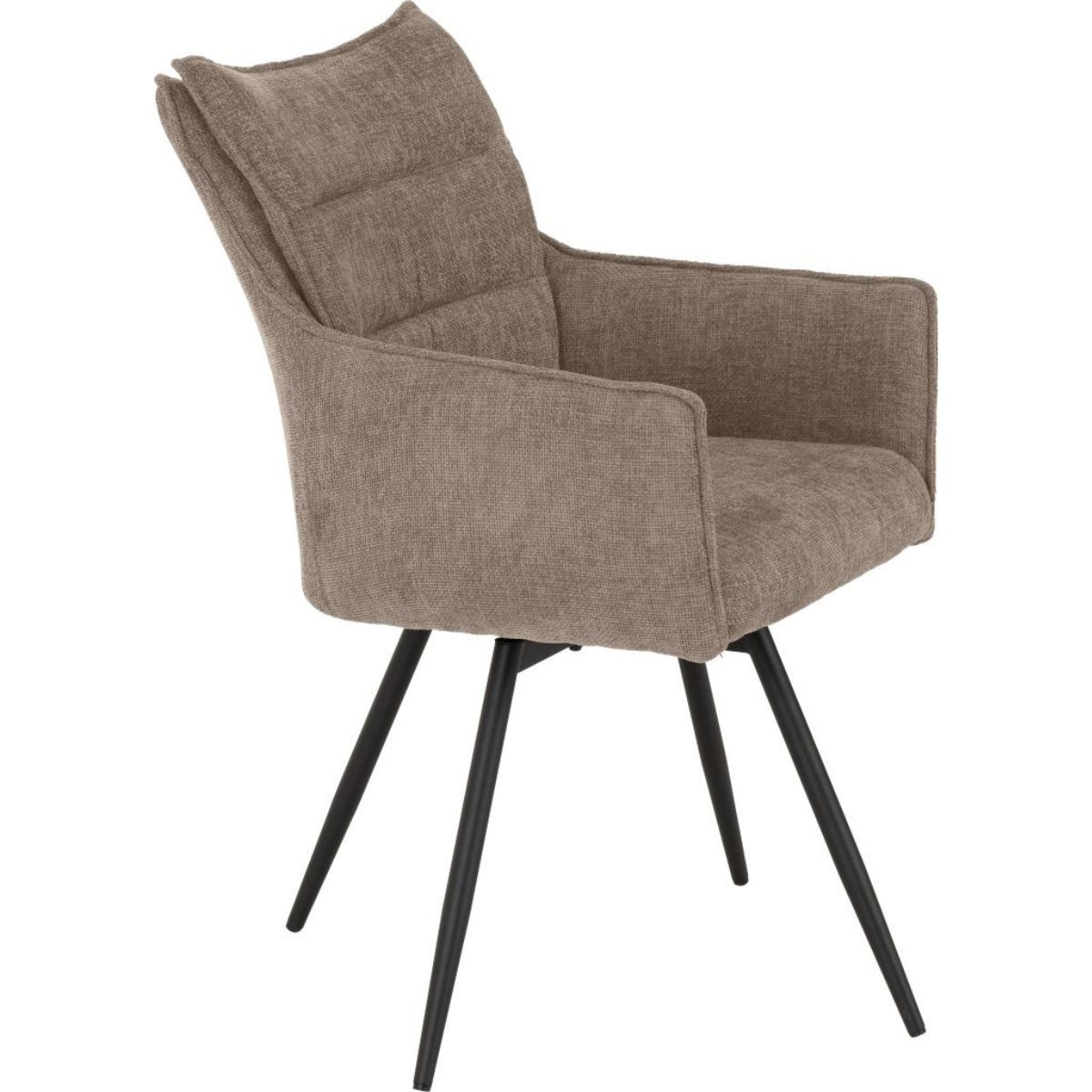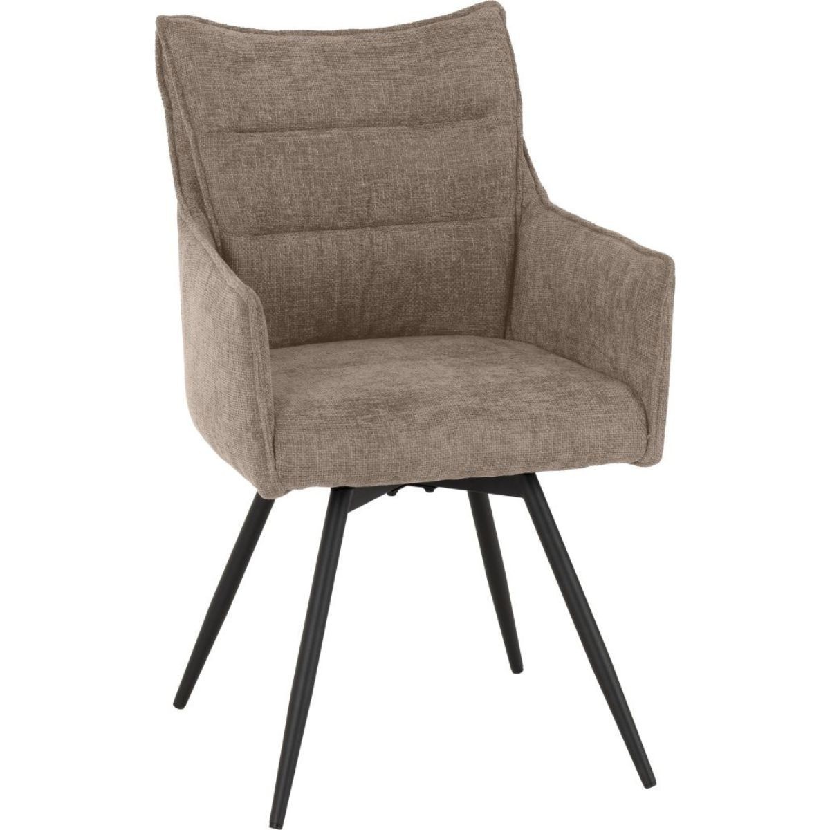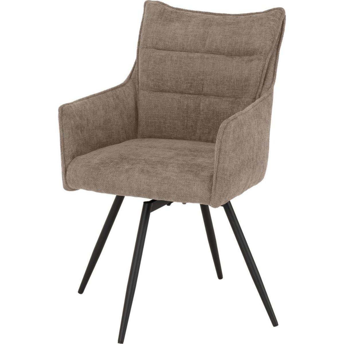 Reference: 400-402-168The Lewis Swivel Dining Chair range brings modern comfort and practicality to your dining space, blending style with everyday ease. Upholstered in soft grey or fawn fabric, each chair delivers a sophisticated look that complements a variety of interiors. The 360-degree swivel feature adds an extra layer of convenience, while black metal legs offer both durability and a bold contrast. Choose from a standard dining chair or a carver chair with arms to suit your seating preferences.