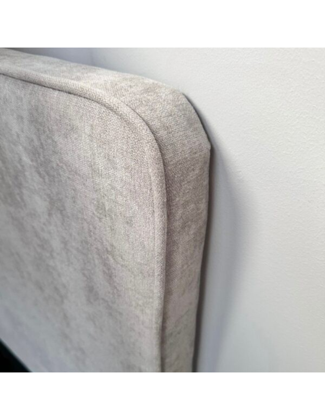 - Upholstered in sleek grey fabric for a modern, elegant finish