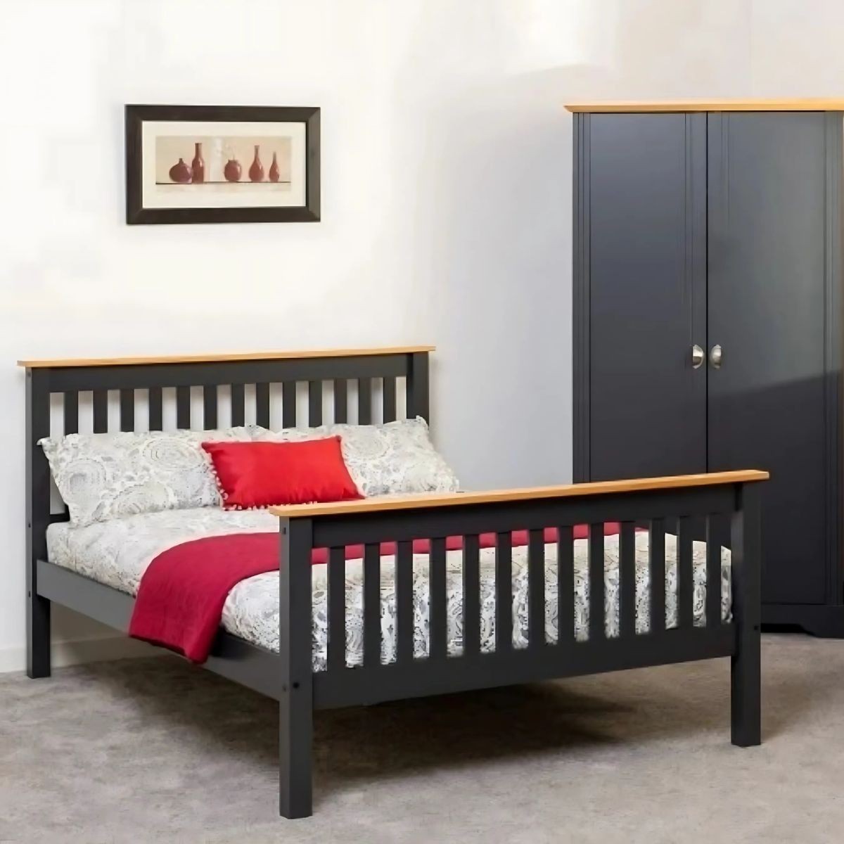 - High foot end design with slatted headboard and footboard