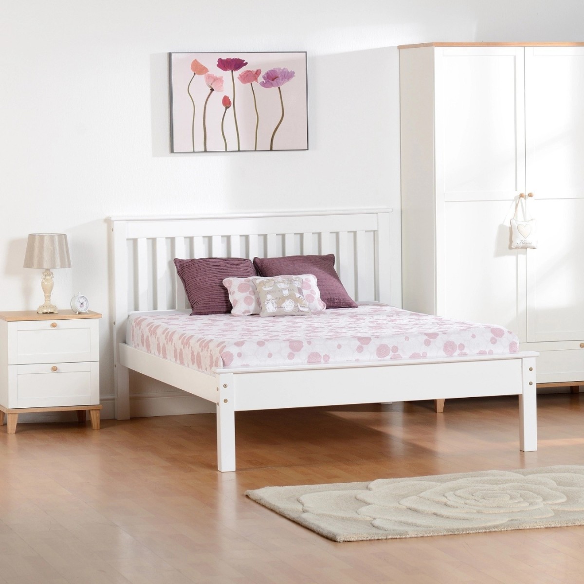 Monaco 4ft6 Low End Bed Set - White (Bed & Mattress)