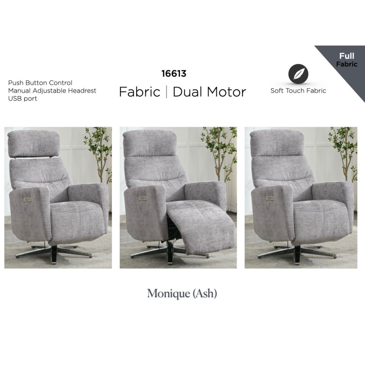 Reference: 16613Elevate your comfort with the Monique Electric TV Chair, designed to combine modern functionality with timeless style. Upholstered in elegant fabric shades of Fossil, Stone, or Ash, this chair enhances any living space with its refined look. The dual motor system allows independent adjustment of the backrest and footrest, giving you complete control over your seating position. Featuring a manual adjustable headrest for personalised support and a built-in USB port for charging devices, the Monique offers both luxury and convenience.