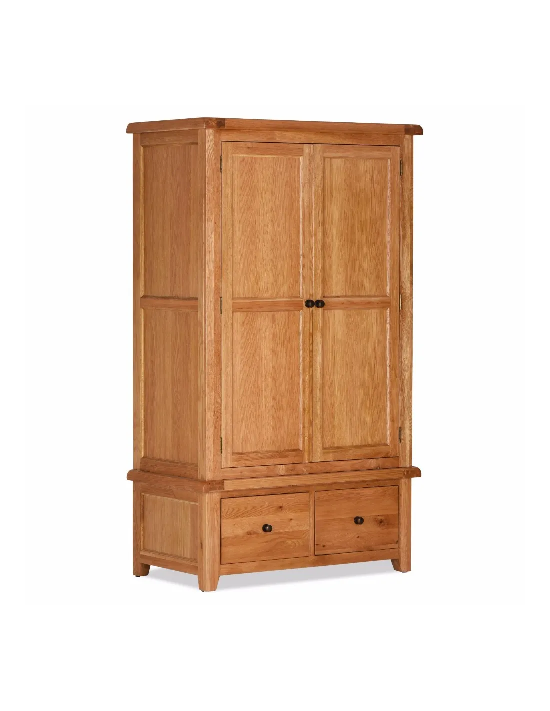 Lancaster 2 Door Wardrobe With Drawers - Solid Oak