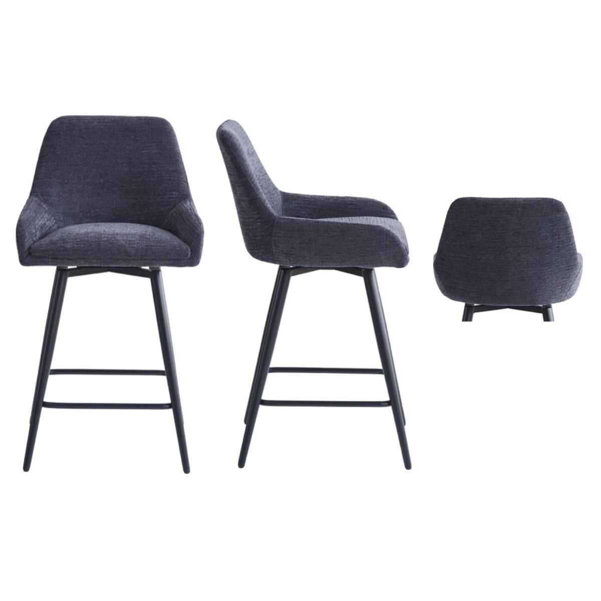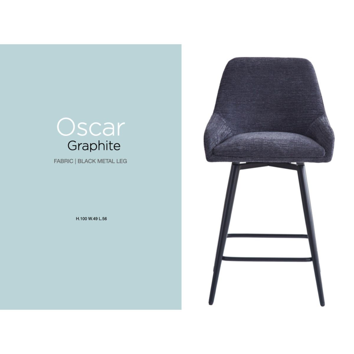 Reference: 16766The Oscar collection combines minimalist design with contemporary style, featuring fabric seats on sleek black metal legs. Available in biscuit, mustard, olive, and graphite, these stools and chairs add a modern touch to any dining or bar area.