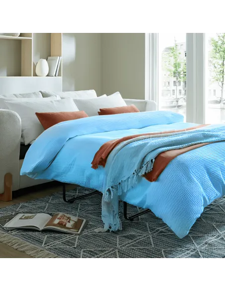 The Preston Deluxe Sofa Bed combines luxurious comfort with sophisticated design, making it an ideal addition to any stylish living space. Crafted with a durable two-fold manual metal action and beech timber sprung slats, this sofa bed offers superior support for both seating and sleeping. It features an upgraded sprung mattress to ensure a restful and comfortable night’s sleep for your guests. Designed to deliver both elegance and functionality, the Preston Deluxe Sofa Bed is the perfect solution for those who want to optimize their space without sacrificing style. Sized to match a standard double bed (4ft6). Key Features: