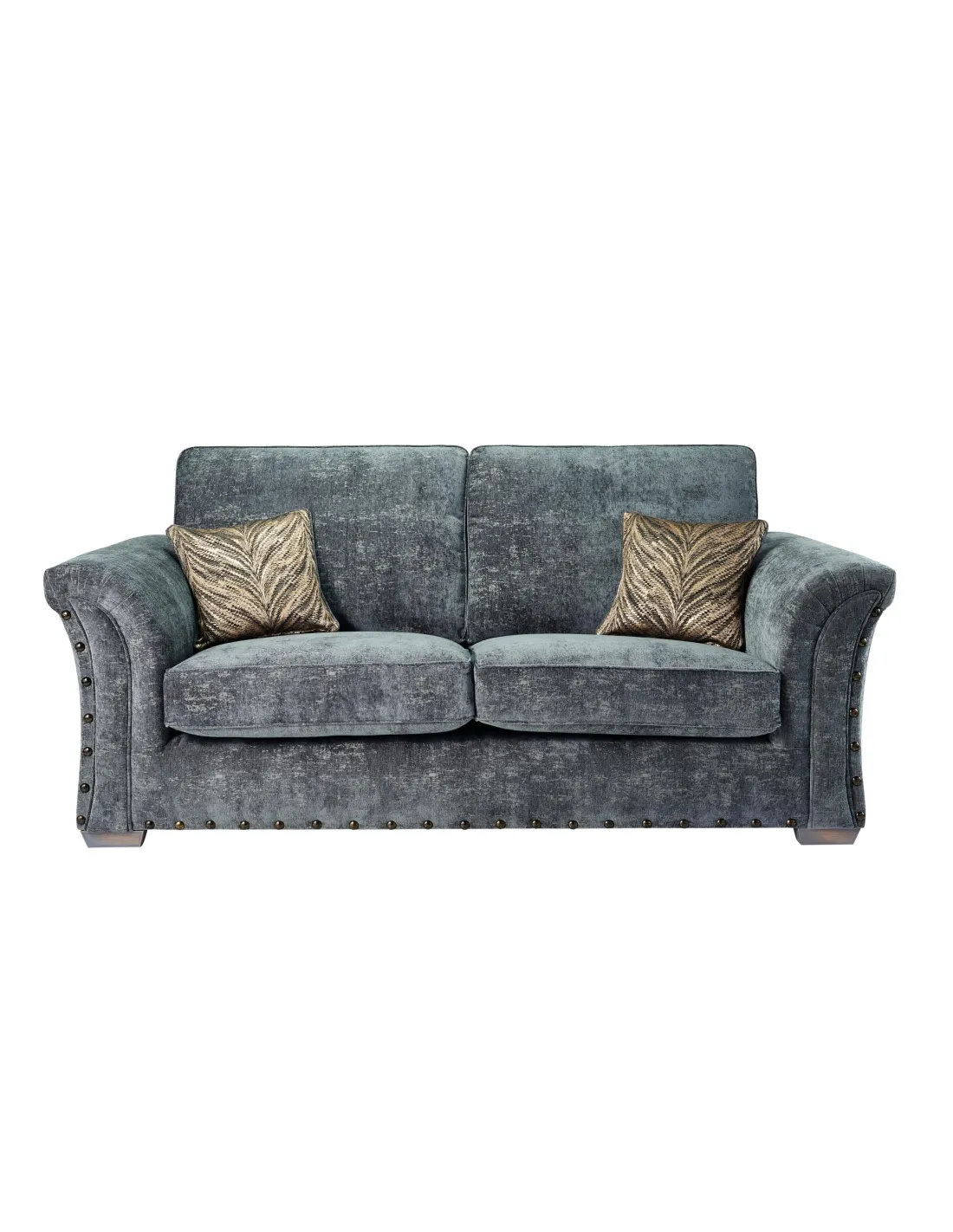 Introducing the Quincy sofa range, where sophistication meets comfort in perfect harmony. Wrapped in the luxurious Meridian Coal fabric, these sofas exude understated elegance and timeless appeal. Paired with sumptuous feather-filled Luxor Teal scatter cushions, they offer a haven of relaxation and style. Supported by sturdy mid oak legs, the Quincy sofas boast a classic yet contemporary aesthetic, adding a touch of warmth and charm to any living space. What sets them apart is the meticulous detailing, with silver studs adorning the armrests and bottom of the sofa, adding a hint of glamour and refinement to the design. With its impeccable craftsmanship and attention to detail, the Quincy sofa range is sure to become the focal point of your living room, offering both comfort and sophistication for years to come.