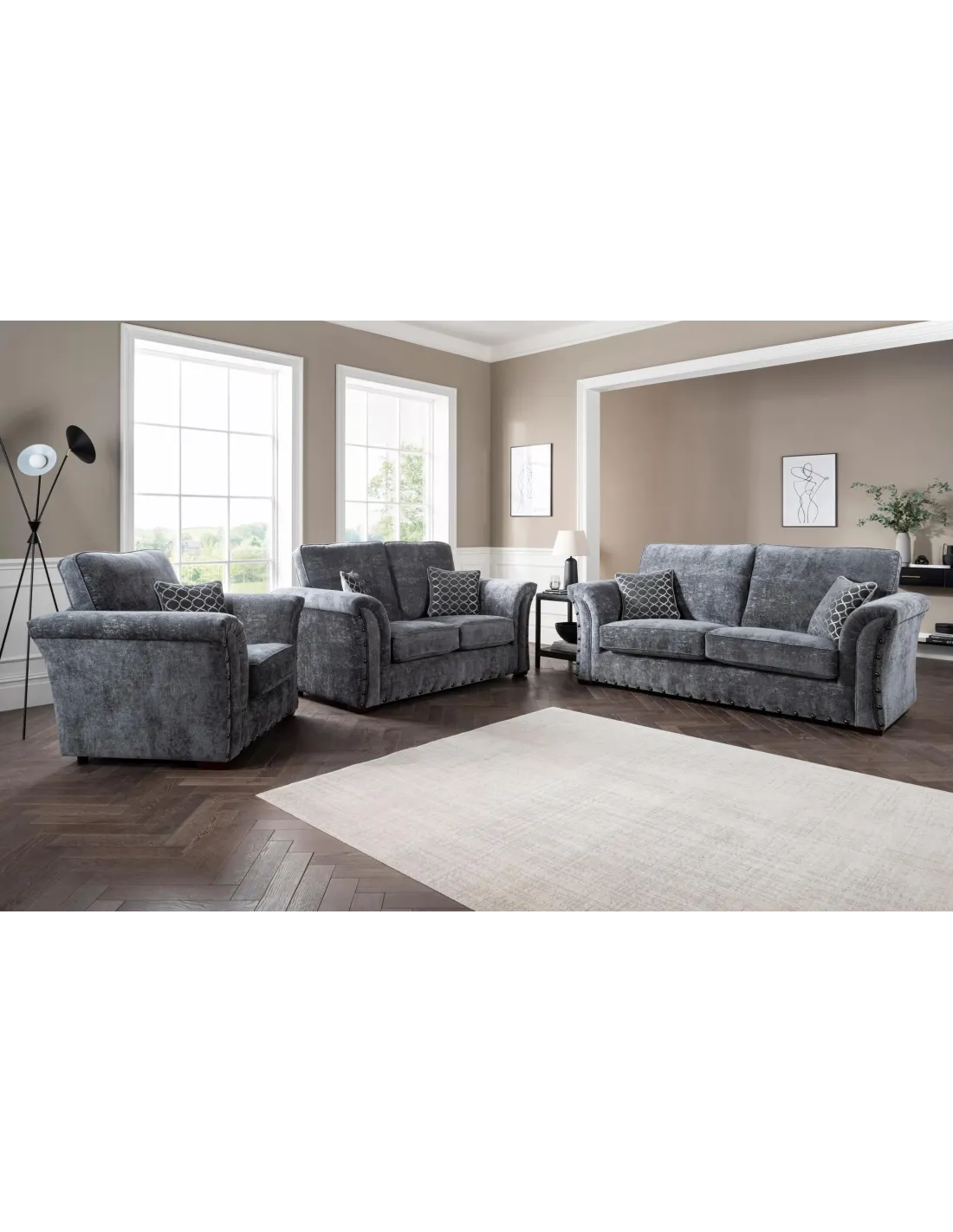 Introducing the Quincy sofa range, where sophistication meets comfort in perfect harmony. Wrapped in the luxurious Meridian Coal fabric, these sofas exude understated elegance and timeless appeal. Paired with sumptuous feather-filled Luxor Teal scatter cushions, they offer a haven of relaxation and style. Supported by sturdy mid oak legs, the Quincy sofas boast a classic yet contemporary aesthetic, adding a touch of warmth and charm to any living space. What sets them apart is the meticulous detailing, with silver studs adorning the armrests and bottom of the sofa, adding a hint of glamour and refinement to the design. With its impeccable craftsmanship and attention to detail, the Quincy sofa range is sure to become the focal point of your living room, offering both comfort and sophistication for years to come.