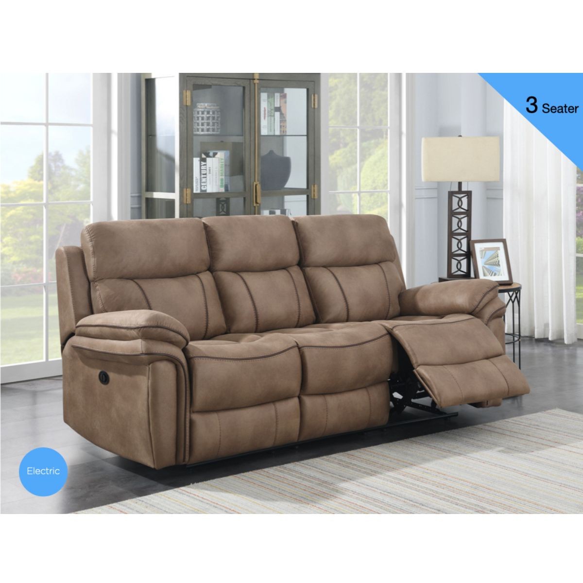 Reference: 14998Create the perfect living room and lounge in comfort with our luxurious Richmond Reclining Suite – where classic design meets modern relaxation. Upholstered in a choice of Sahara or Charcoal Grey soft-touch fabric, the Richmond suite brings warmth, style, and comfort into your home. Designed with highlighted stitching for a contemporary twist, this suite adds visual interest while maintaining timeless appeal. With its high-rise backrest providing superior neck and shoulder support, and plush cushions throughout, Richmond offers a deep, supportive sit. The electric reclining mechanism is effortless to use, helping you find your perfect lounging position with ease.