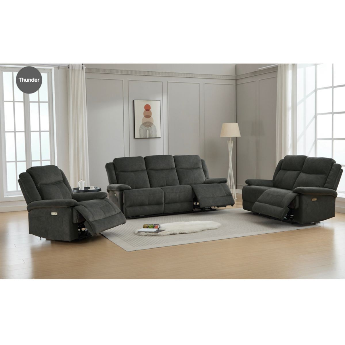 Reference: 16467Introducing the Rockport Electric Reclining Suite, available in luxurious Dusk, Storm, and Thunder soft-touch fabric finishes. This suite delivers the perfect balance of modern convenience and ultimate relaxation. With pocket-sprung seats for superior comfort and high headrests for excellent neck and head support, Rockport is built for both style and long-lasting durability. Effortlessly recline to your preferred position with the smooth electric mechanism, and keep your devices charged with the integrated USB port—making comfort and functionality beautifully seamless.