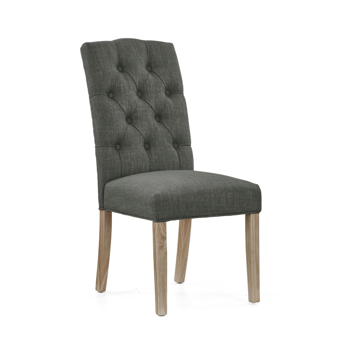 Reference: G8439The Salcombe Chelsea Dining Chairs combine timeless elegance with everyday comfort. Available in a choice of charcoal, grey, or natural upholstery, each chair features a beautifully buttoned backrest and a smooth, cushioned seat pad, offering both style and support for long, relaxed dinners. Set on whitewashed wooden legs, the chairs bring a light, refined touch to any dining space—perfect for classic and contemporary interiors alike. Their versatile colour options make them easy to pair with a variety of dining tables and room styles.