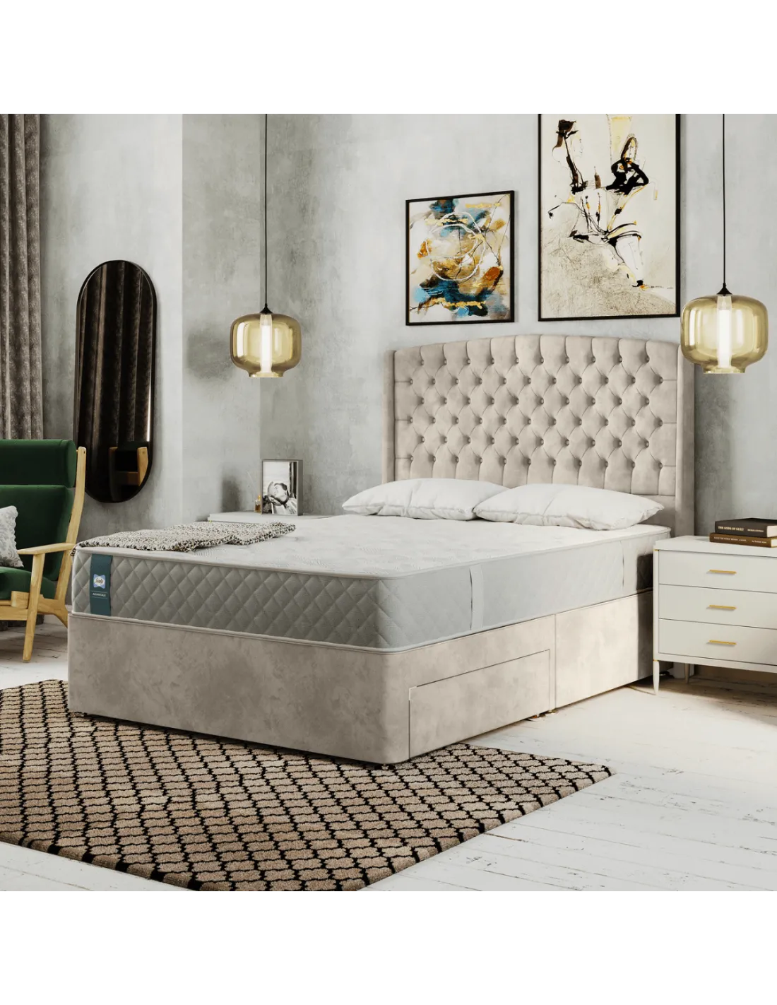 - Quilted Top: A smooth, even finish enhances the luxurious feel of the Waltham mattress. The quilted surface eliminates visible tufts, offering a sleek appearance and added comfort.