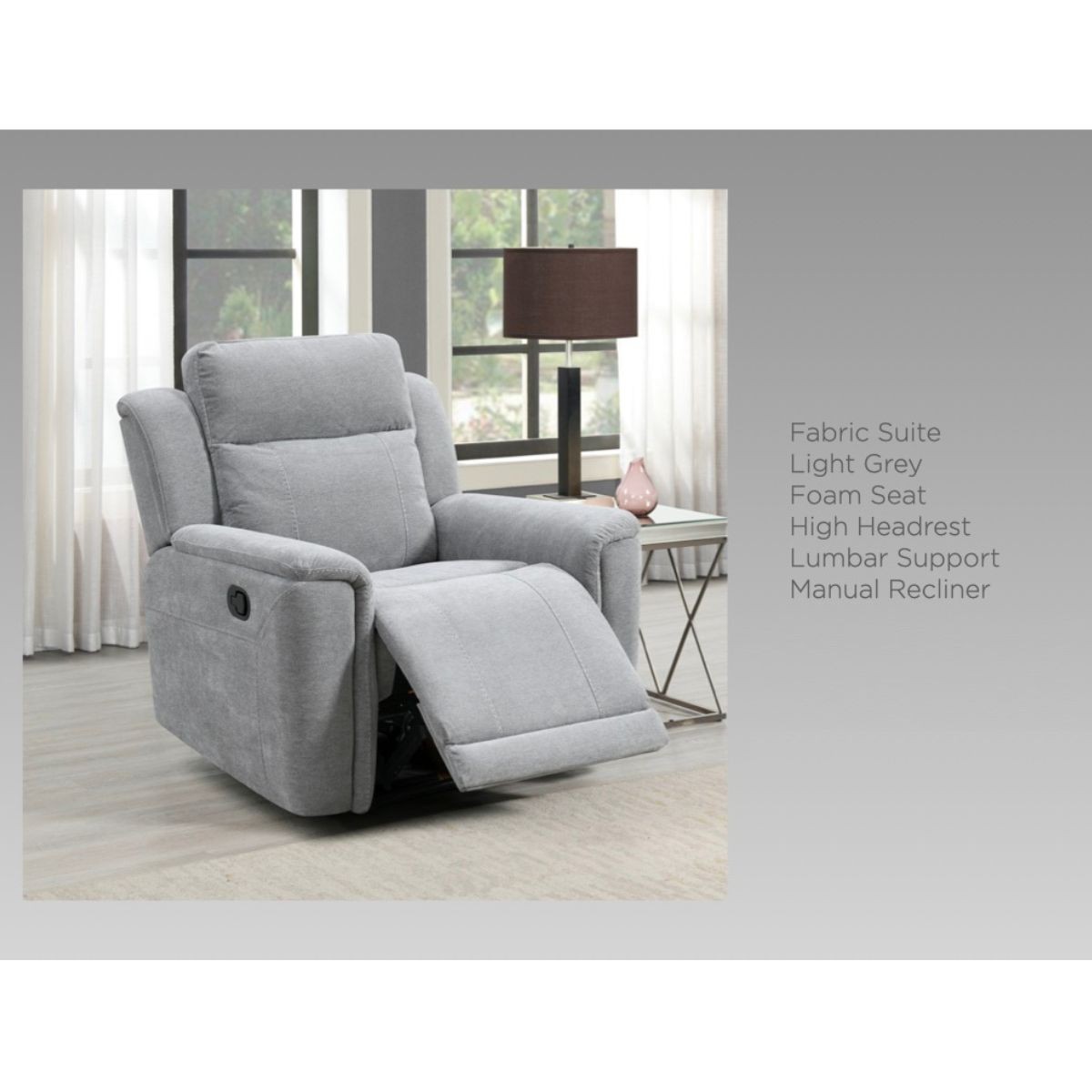 Reference: 16701Unwind in style with the Somerton Manual Reclining Suite, designed for those who value both comfort and convenience. Upholstered in luxurious dark grey or light grey fabric, this suite adds a sleek, modern touch to any living space. Perfect for everyday lounging, it combines functionality with relaxation, making it the ideal centrepiece for modern homes.