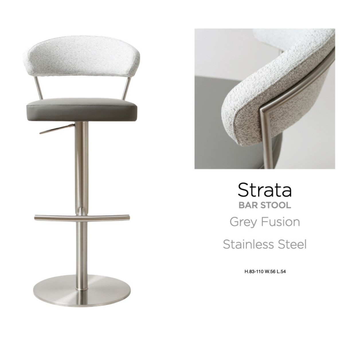 Strata Barstool -Stainless Steel/Steel Grey Fusion