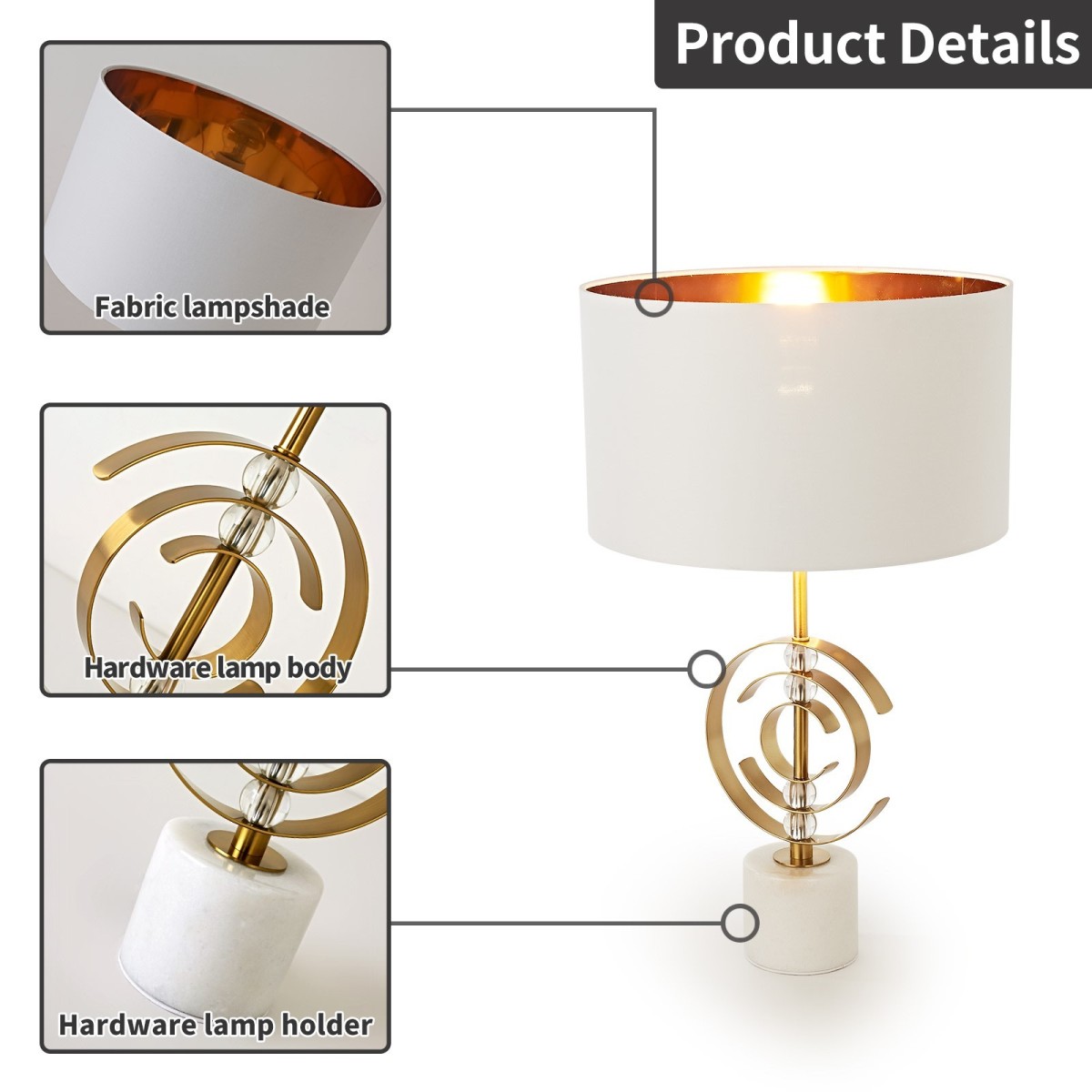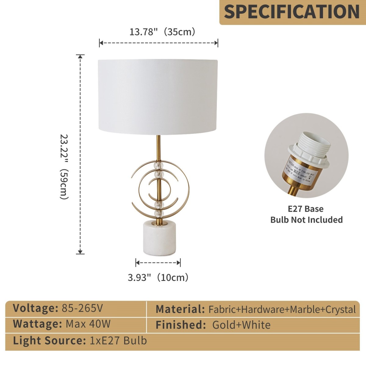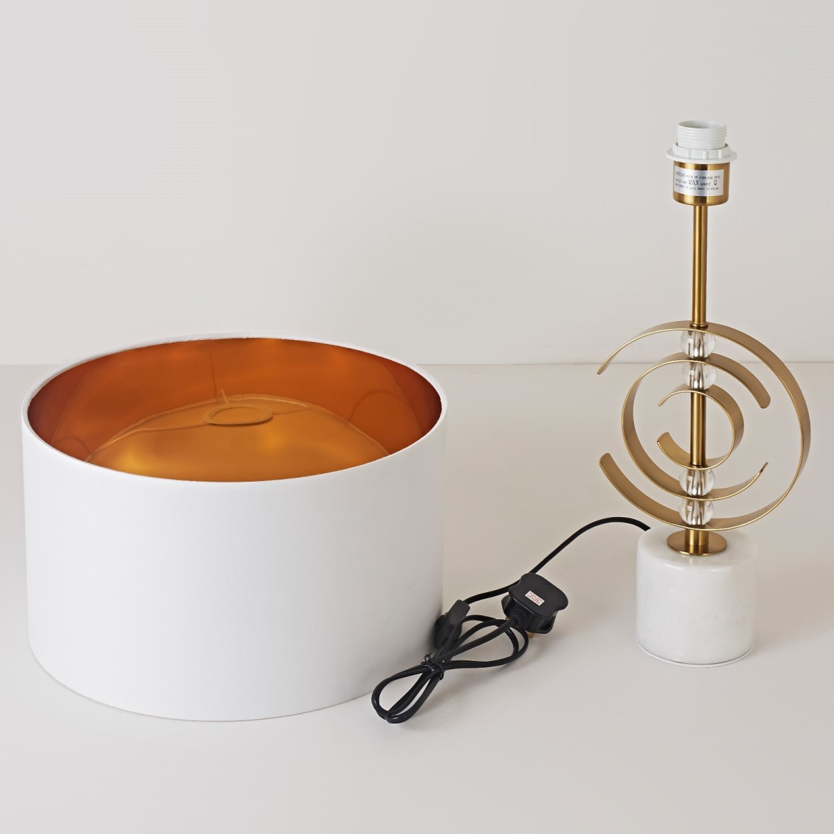 Reference: T209023 LampIntroducing the T209023 Lamp, a sleek embodiment of modern luxury. Its elegant gold and white finish exudes sophistication, perfectly complemented by a pristine white shade. The pièce de résistance? A luxurious marble base that adds a touch of opulence to any space.
