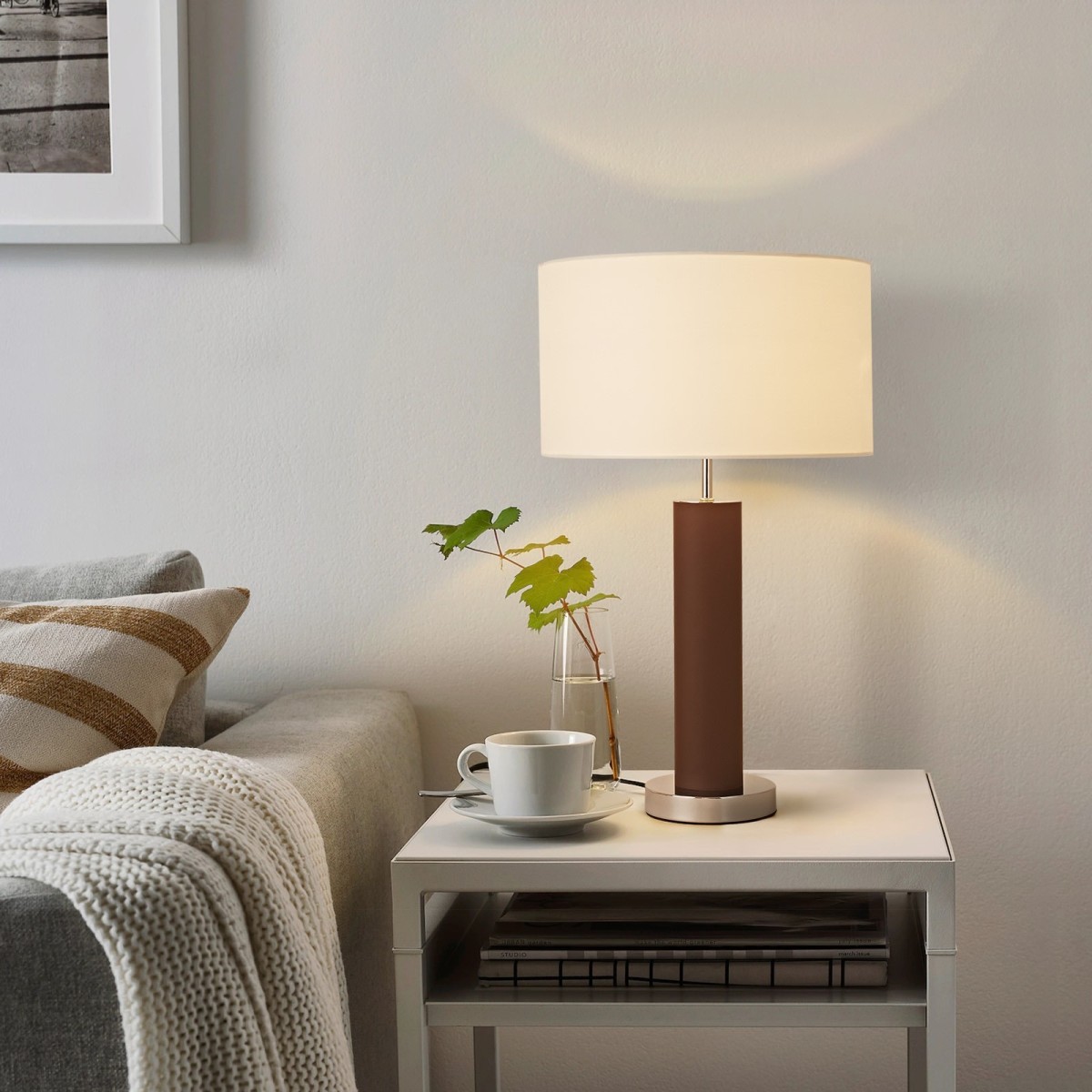 Reference: T2315 LampIntroducing the T2315 Lamp, a fusion of contemporary chic and timeless elegance. With its inviting coffee colour finish, this lamp exudes warmth and sophistication, making it a standout piece in any space. The modern design, coupled with a crisp white shade, creates a harmonious balance of style and functionality. Perched atop a sleek silver base, it adds a touch of refined glamour to your decor.