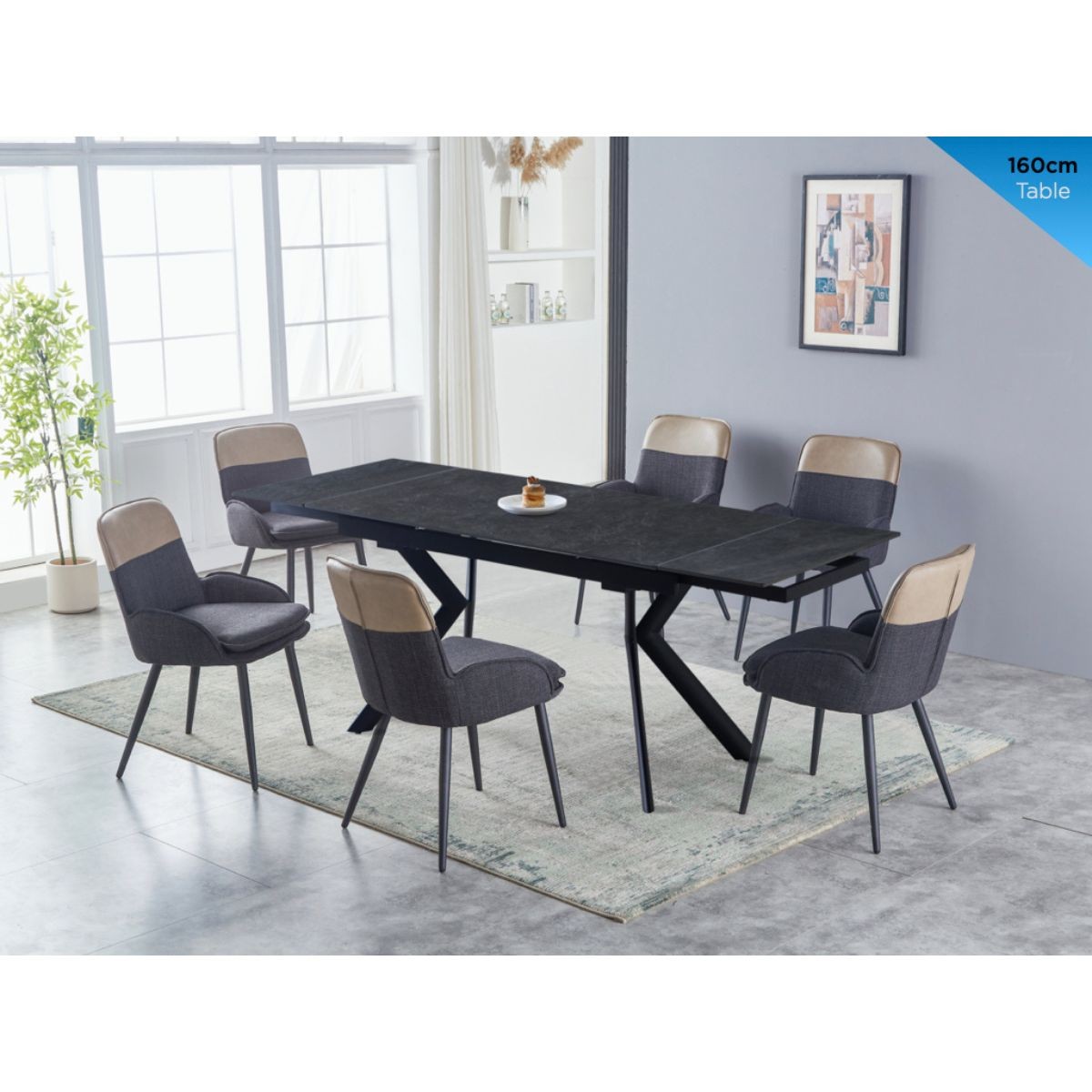 Reference: 15980The Valantino 160cm Extension Dining Table blends contemporary style with smart functionality, making it a perfect centrepiece for modern dining rooms. With its automatic extension mechanism, this table easily adapts to family dinners or larger gatherings. Available in light or dark grey, it pairs beautifully with Redmond chairs for a cohesive and stylish dining set that enhances both comfort and elegance.