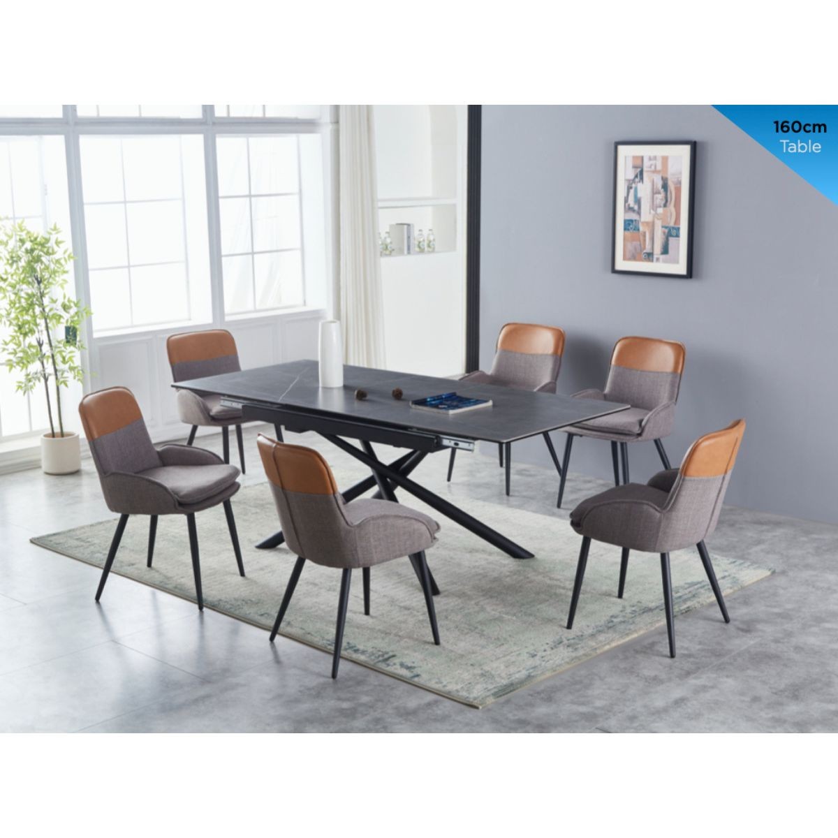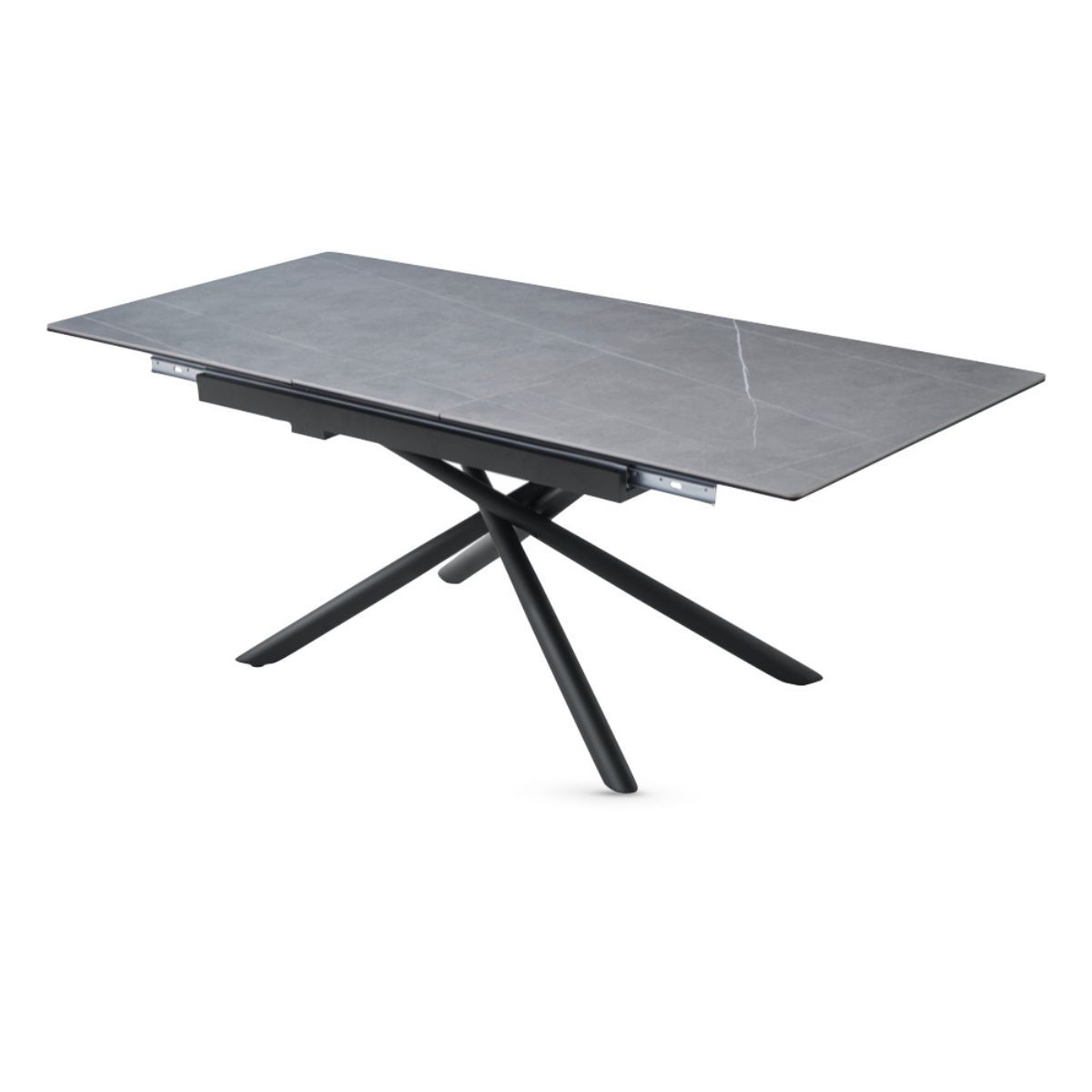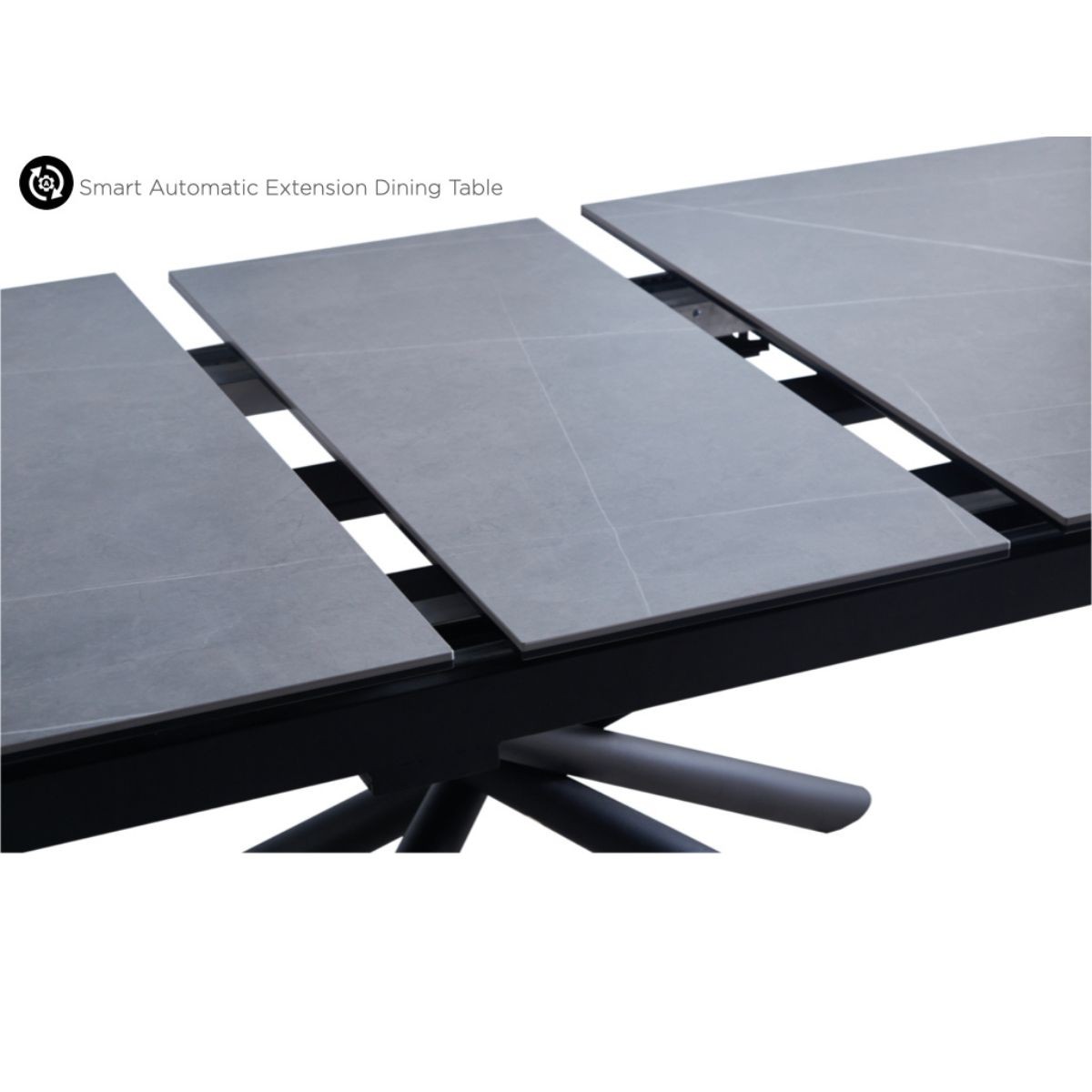 Reference: 15970The Ventura Extension Dining Table combines sleek, modern design with practical innovation. Featuring a sintered stone top that is both heat and scratch-resistant, this table delivers durability without sacrificing style. Its clever automatic extension system allows the table to expand seamlessly from 160 cm to 200 cm, making it ideal for family gatherings or entertaining guests. Supported by striking black piped metal star legs, the Ventura is available in a choice of light grey or dark grey to suit any modern dining space.