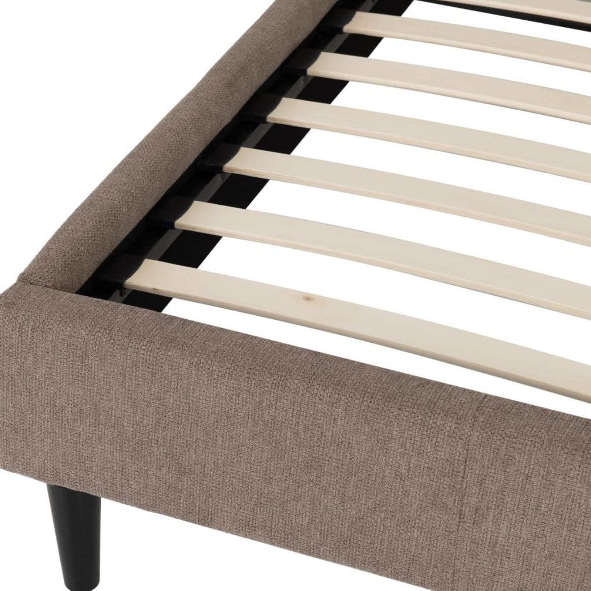 Reference: SET-VERONABROWN50The Verona bed range offers a sleek, modern aesthetic perfect for contemporary bedrooms. Upholstered in soft fabric in a choice of grey or brown, it blends stylish design with everyday comfort. A padded headboard provides extra support for relaxing or reading in bed, while the sturdy wooden slatted base ensures reliable mattress support. Built with a durable and robust frame, the Verona promises lasting performance and stability.
