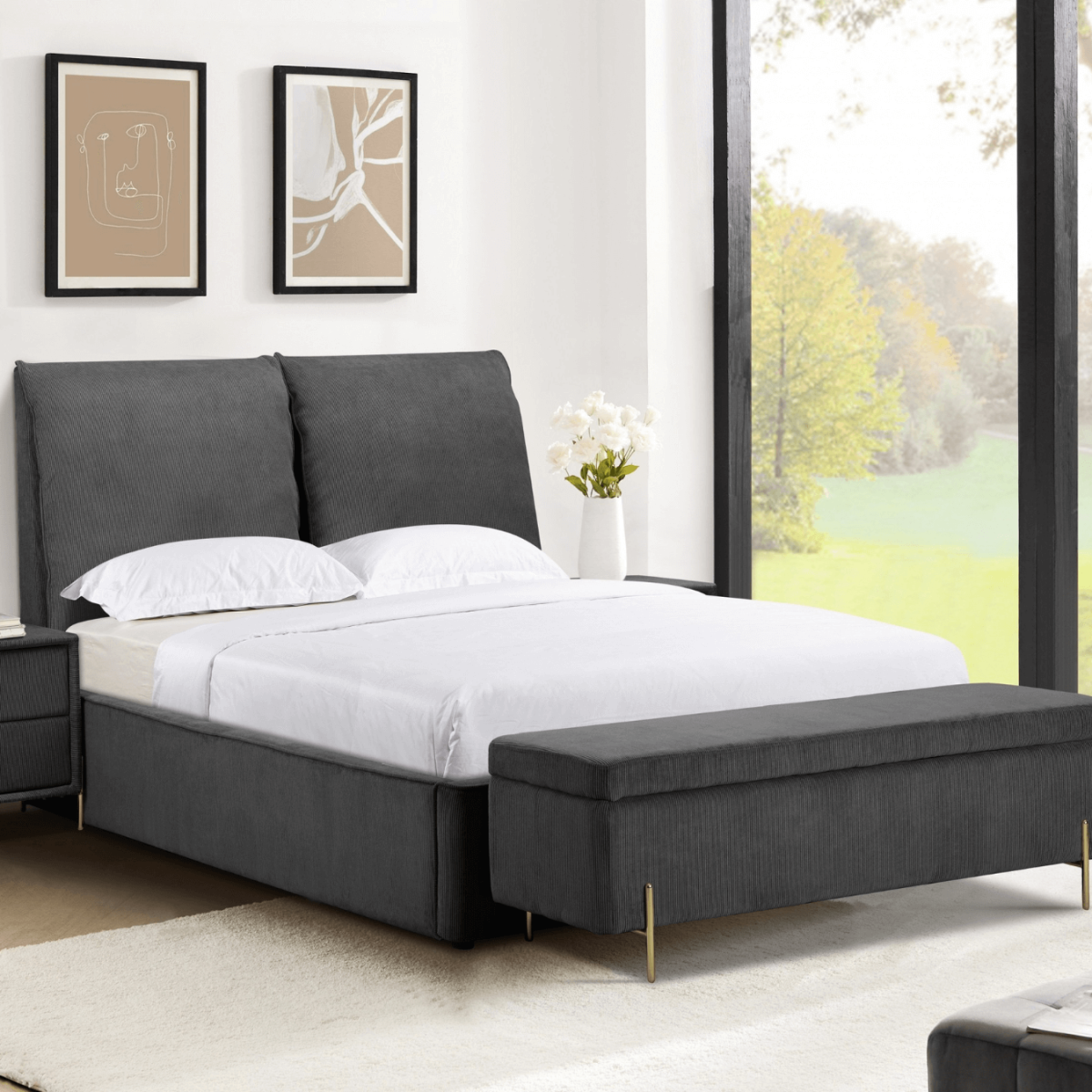 Reference: Waterford 5ft GreyThe Waterford Bedroom Collection brings refined elegance to modern and contemporary interiors with its luxurious grey corded fabric finish. Designed to elevate your space with subtle sophistication, each piece in the collection is crafted for both visual appeal and long-lasting quality. The Waterford bedframe serves as a stylish focal point and features a gas-lift mechanism that reveals spacious under-mattress storage — ideal for keeping your bedroom organized without compromising on style. This perfect blend of comfort, functionality, and design makes the Waterford a standout choice for any home.