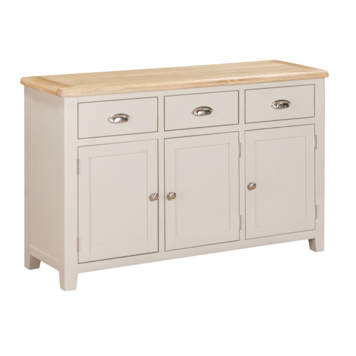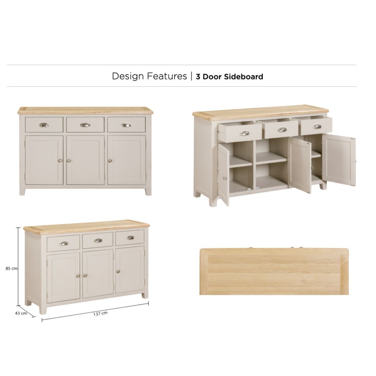 Reference: 16531The Windermere Collection combines traditional charm with modern sophistication. Featuring beautifully oiled oak tops and a soft Oyster Grey painted finish, this range offers timeless elegance with a contemporary twist. The Flip-Top Extension Dining Table serves as the centerpiece, supported by coordinating sideboards and occasional pieces to bring functional style to every room. Perfectly balancing warmth, practicality, and refined design, Windermere is a collection to cherish.